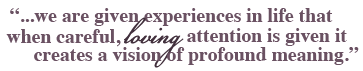 I truly believe that we are given experiences that can create a vision of profound meaning and when careful and loving attention is paid to these experiences it can open a path to one's true calling.